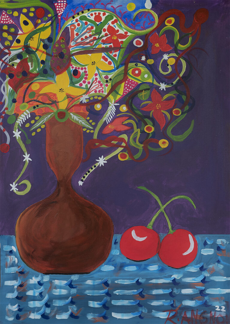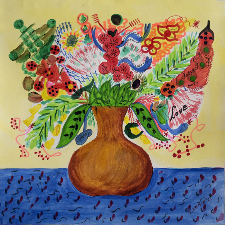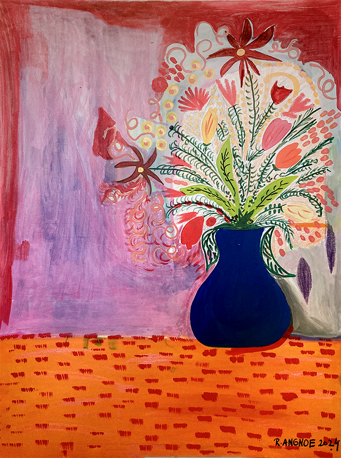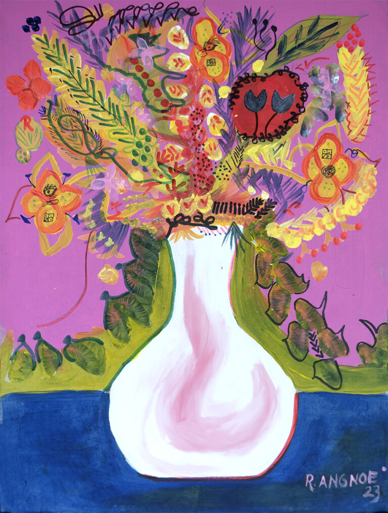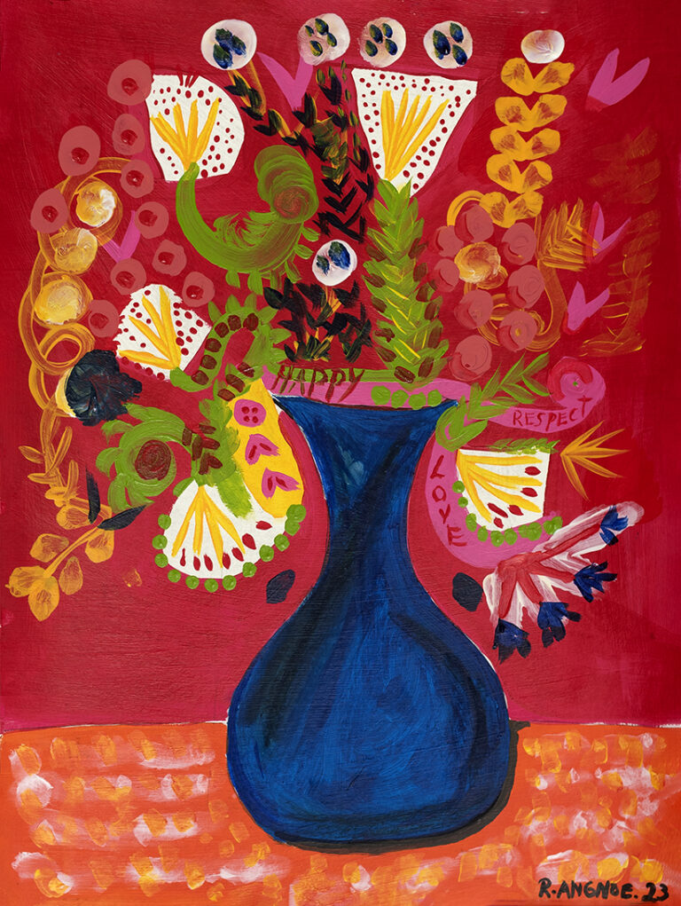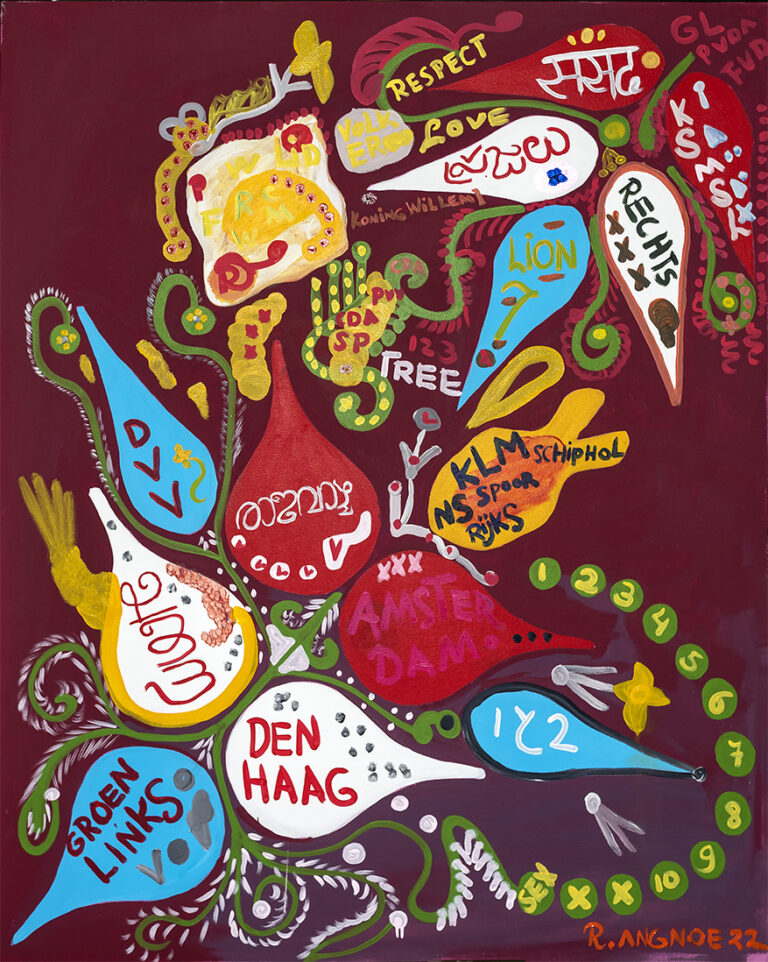 R. Angnoe, Bathroom flowers, 80x60, acryl op canvas, 2024 R. Angnoe_Theos Flowers_40x30_Mixed media on card board_2023 R. Angnoe, Andres Flowers, 30x20, Mixed media on card board, 2023 R. Angnoe, The Blackboard, 50x50_Mixed media on canvas_2023 R. Angnoe_Wedding Flowers 2_35x35_mixed media on paper_2023 R. Angnoe_Brasilia_180x130_acrylic on canvas_2023 R. Angnoe_The Lake_100x100_acryl op canvas_2023 R. Angnoe, 'Wills Flowers', 75x110, acrylic on canvas, 2022 R. Angnoe_collaboration dirk!_Together_100x100_acryl op canvas_2023 R. Angnoe_The Lake 2_32x23_mixed media on card board_2023 R. Angnoe_Romas Flowers_40x30_acryl on card board_2023 R. Angnoe, Art of Living Flowers, 35x28, acrylic on paper, 2022 R. Angnoe, 'Jaisrhees Flowers', 50x40, acrylic on paper, 2022 R. Angnoe, Wedding Flowers, 29x18.5, mixed media on paper, 2022 R.Angnoe, The real thing in Amsterdam, 100x70, acrylic on paper, 2022 R. Angnoe, Polity, 150x120, acrylic on canvas, 2022 R. Angnoe, Theyyam Face, 100x80, oil on canvas, 2022 R. Angnoe, The Barong, 100x70, acrylic on canvas, 2022 R.Angnoe, When in Amsterdam, 100x70, acrylic media on paper, 2022 R.Angnoe, The relation between men and women, 100x70, acrylic on paper, 2022 R.Angnoe, Vaas met bloemen 3, 70x50, acrylic on paper, 2022 R.Angnoe, Life of Joep, 48 x 37, acrylic on paper, 2022 R.Angnoe, Nature and sex around the World, 54x50, acrylic on canvas, 2022 R.Angnoe, Life in Amsterdam, 70x50, acrylic on canvas, 2022 R.Angnoe, Untitled, 40 x 40, acrylic on canvas, 2022 R. Angnoe, Flowers and cherries, 100x70, acryl op canvas, 2022 R.Angnoe, Vaas met bloemen 2, 100 x 70, acrylic on canvas, 2022 R.Angnoe, Water jug with flowers, 100 x 80, acrylic on canvas, 2022 R. Angnoe, The art between the Netherlands and Greece, 100x70, mixed media op papier, 2021 R.Angnoe, After the Club, 115x85, acrylic on canvas, 2022 R.Angnoe, The face of Kathakali, 100x70, mixed media on paper, 2022 R. Angnoe, Pruimenbloesem, 30x30, waterverf op canvas, 2021 R. Angnoe, De giftige bloem, 100x80, acryl op canvas, 2021 R. Angnoe, Lotusbloemen in de zwamp, 30x30, waterverf op canvas, 2021 R. Angnoe, Drie zusters, 100x80, acryl op canvas, 2021 R. Angnoe, Het verkeer van Suriname, 100x80, acryl op canvas, 2021 R. Angnoe, Goudzoeker in het bos, 100x80, acryl op canvas, 2021 R. Angnoe, Vaas met bloemen, 100x80, acryl op canvas, 2021 R. Angnoe, Het alfabet, 100x55, acryl op canvas, 2021 R. Angnoe, De spieren, 100x80, acryl op canvas, 2021 R. Angnoe_Twee vasen met bloemen, 100x80, acryl op canvas, 2021 Rawien Angnoe, De mens, geloof en liefde om de wereld, 100x80, acryl op canvas, 2021 R. Angnoe, Liefdesboom, 100x55, acryl op canvas, 2021